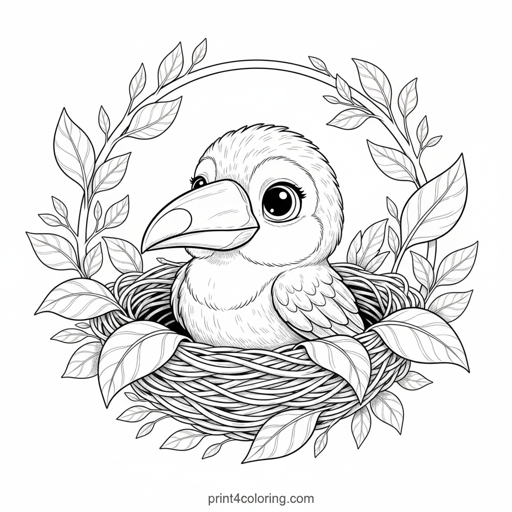Curious Toucan Chick's Cozy Nest Coloring Page
