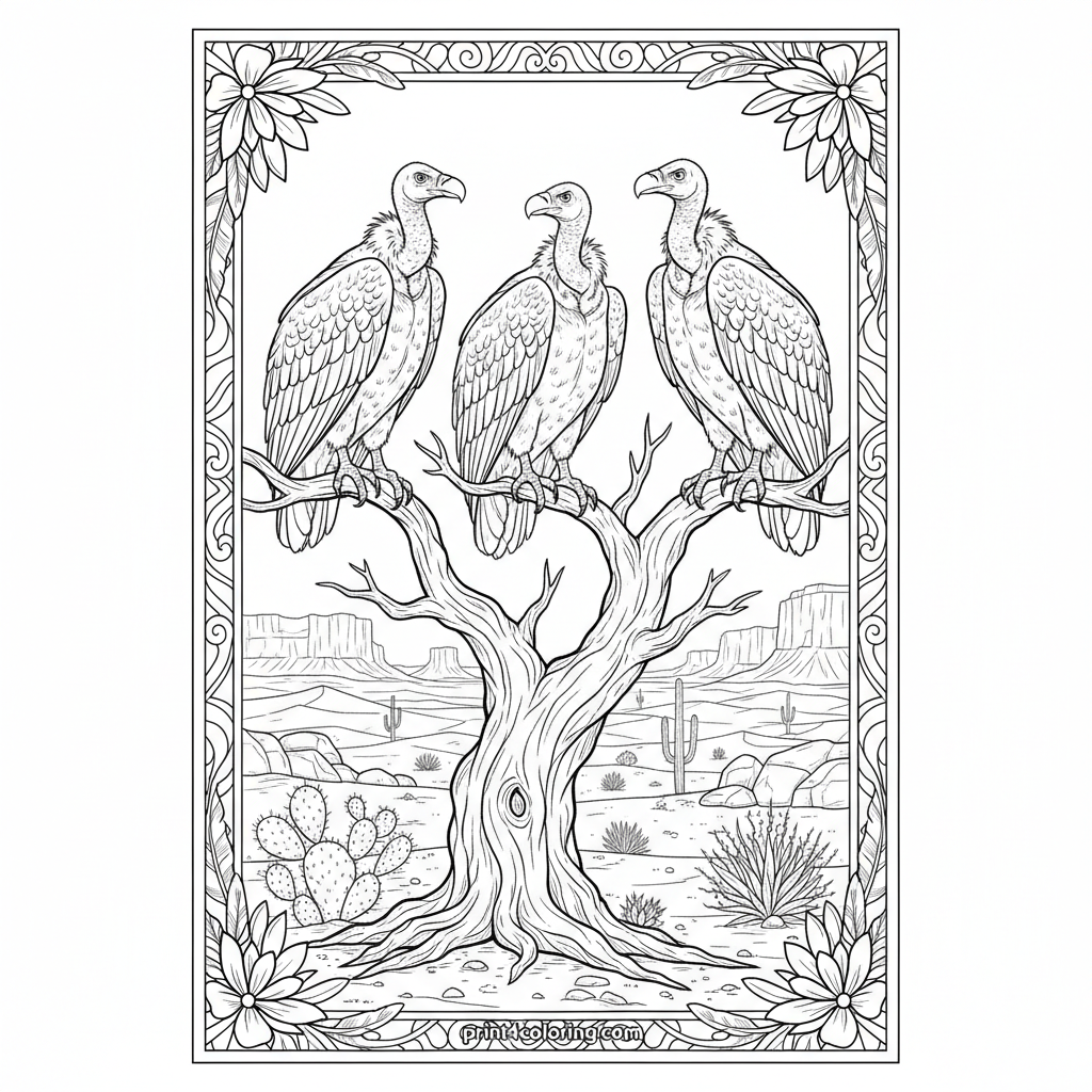#vultures#desert#birds#nature#tree#wildlife#detailed#expert#coloring-page#printable