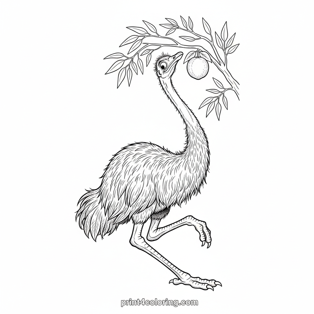 Emu's Epic Reach for a Tasty Treat Coloring Page