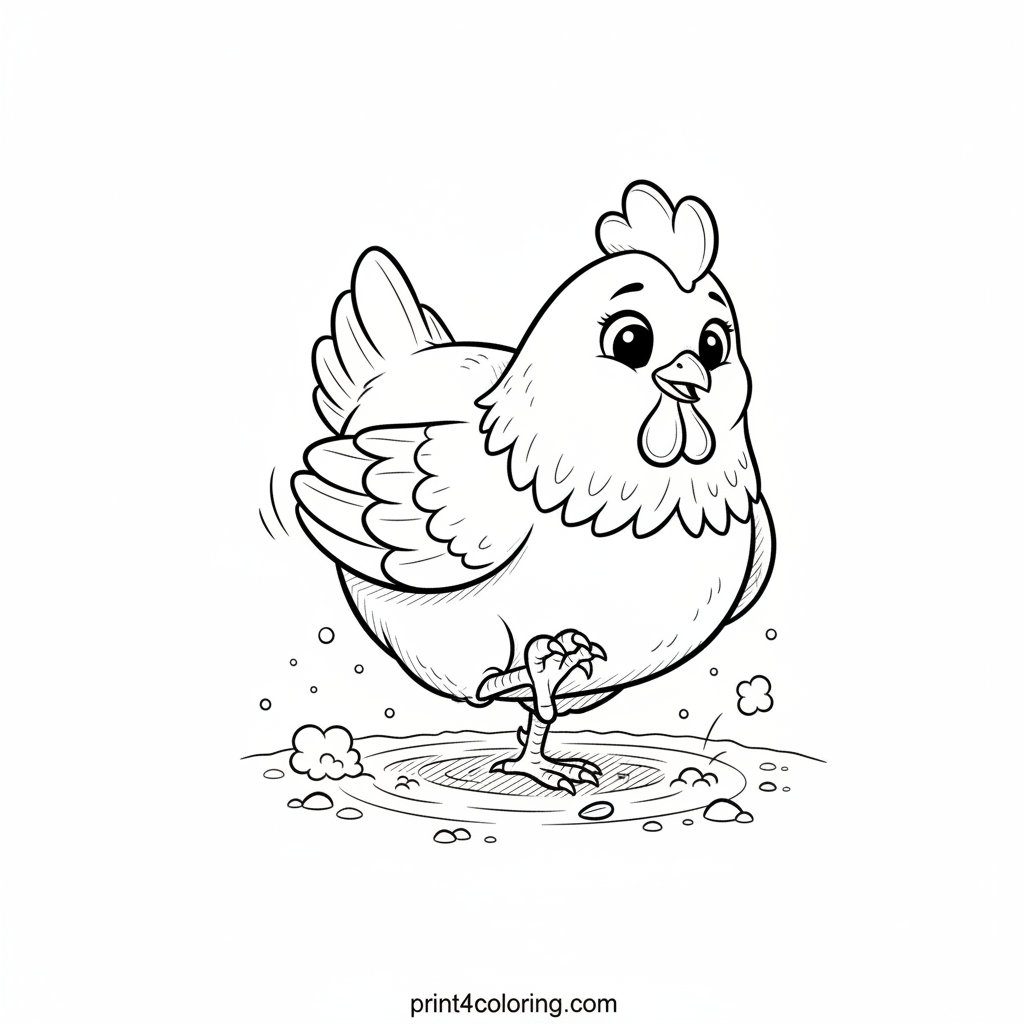 - 4🌈 Dynamic Pose - Emphasize the hen's energy by using slightly bolder colors on the leg that's raised and the ruffled feathers, suggesting motion.