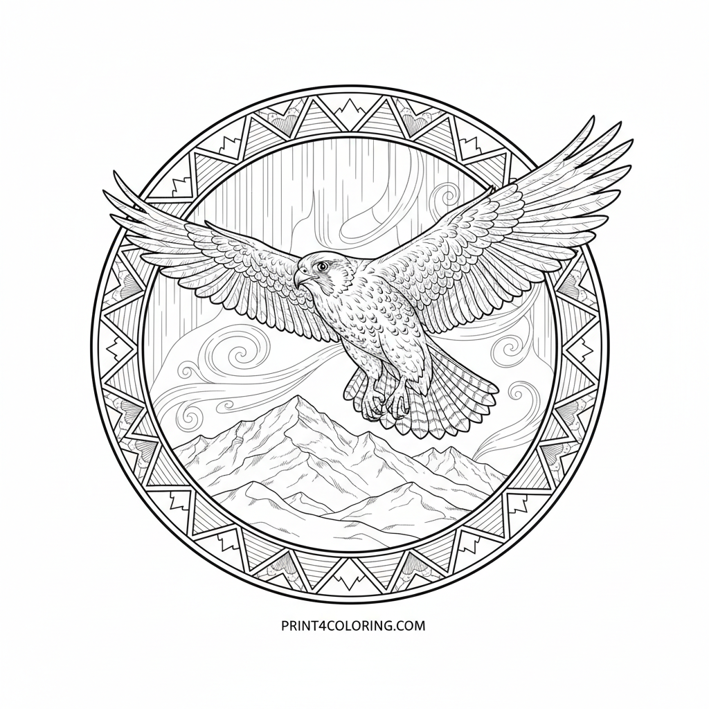 Ethereal Aurora Falcon: Mountain Majesty Coloring Page
