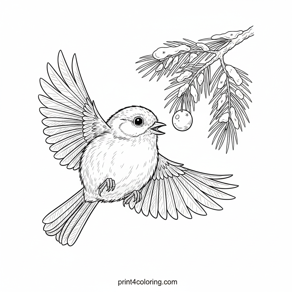 Fluffy Winter Chickadee's Berry Delight Coloring Page