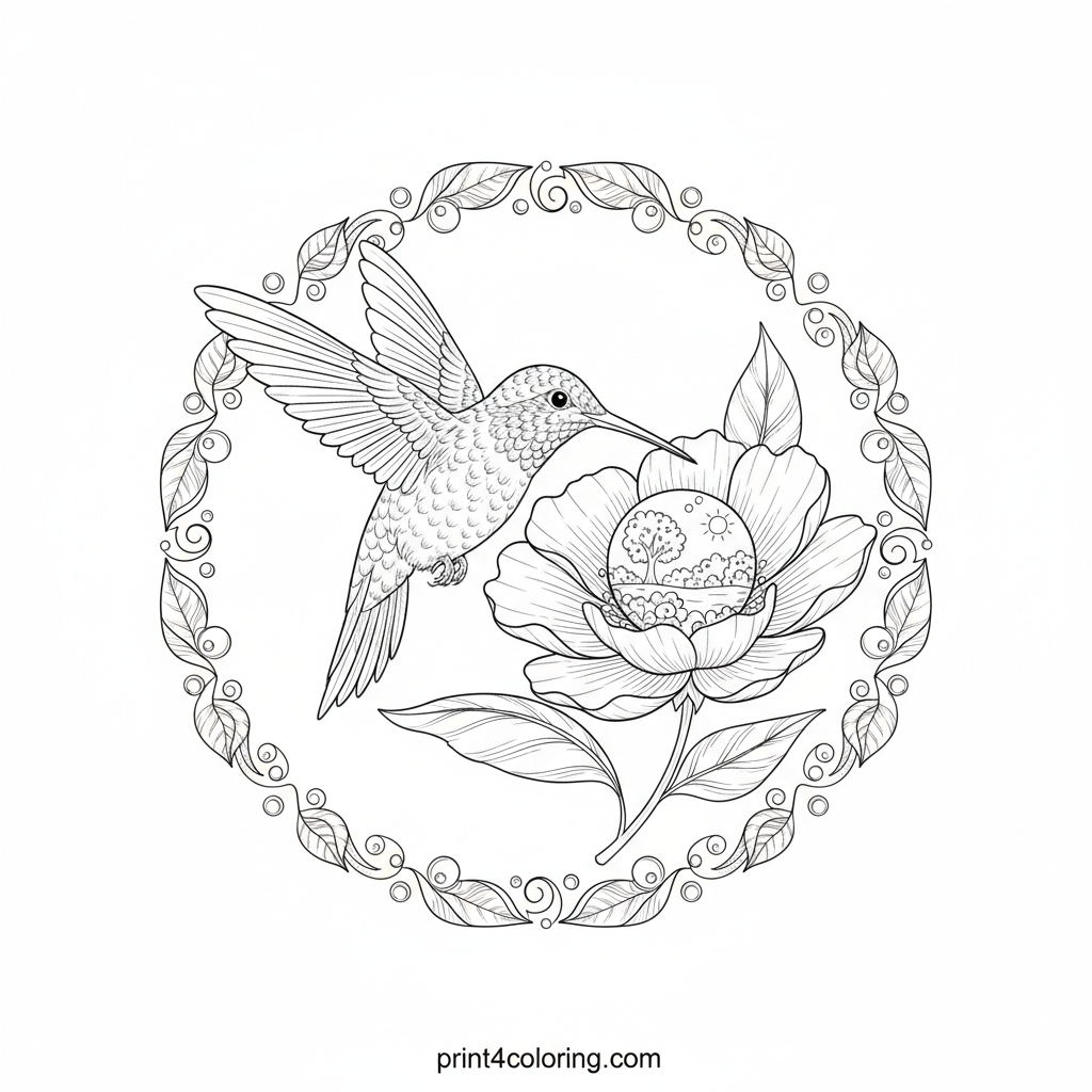 Garden Jewel: Iridescent Hummingbird and Reflecting Dewdrop Coloring Page