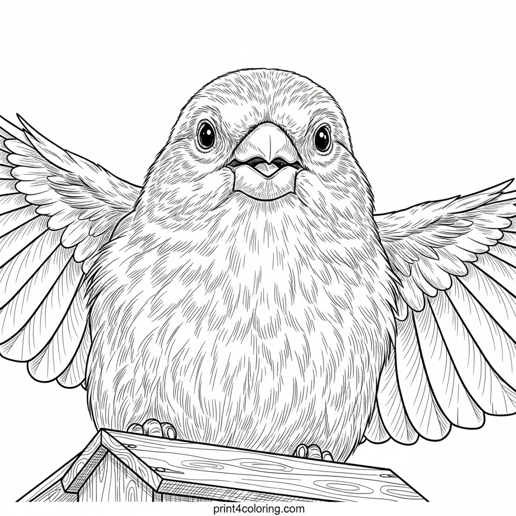 Witness the breathtaking beauty of a canary in mid-flight! This intricate coloring page captures a golden canary as it gracefully takes off from a detailed bird feeder, wings fully extended and feathers rendered with exquisite precision. Bring this dynamic scene to life with your most vibrant colors, capturing the energy and elegance of nature.