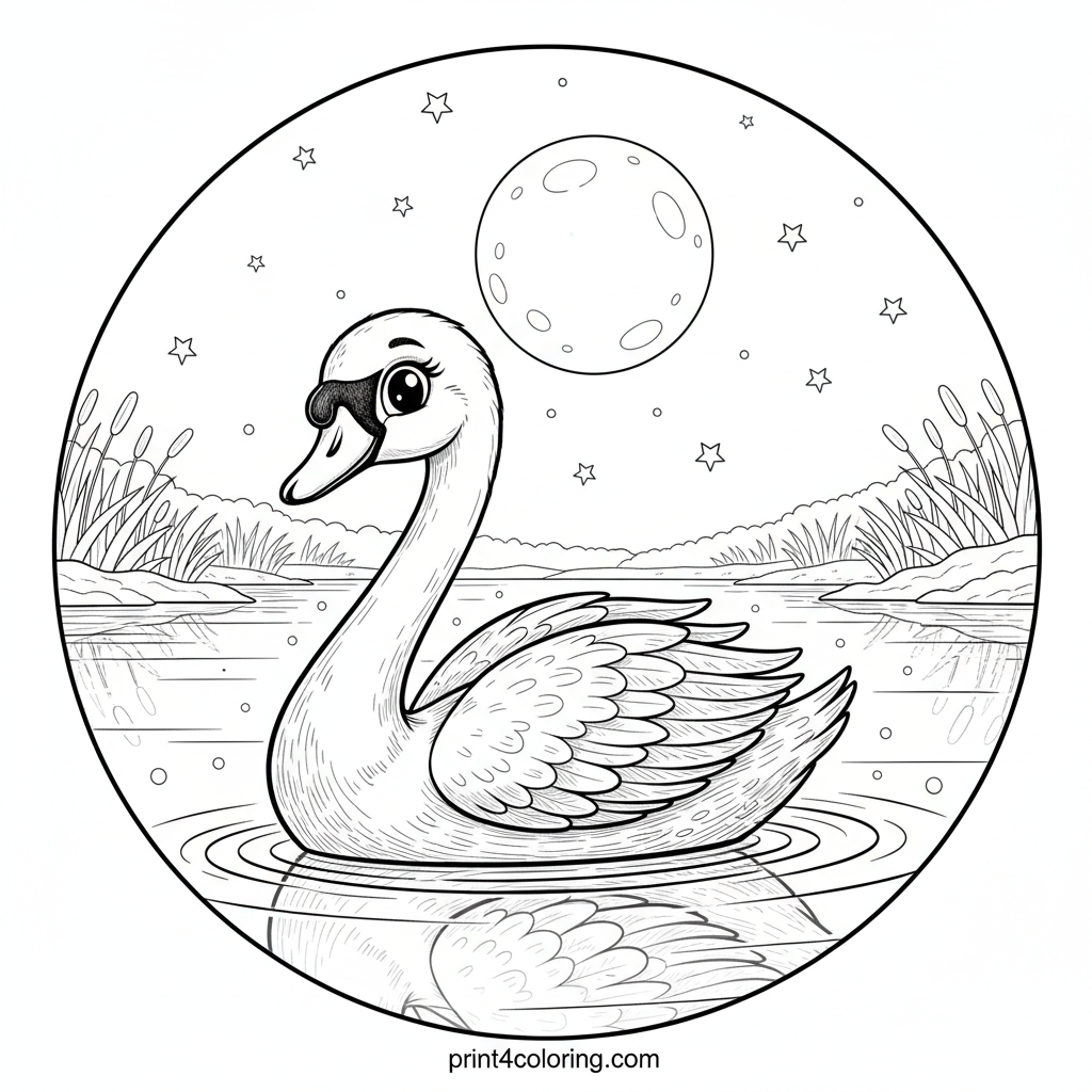 Graceful Moonlight Swan on a Starlit Lake Coloring Page