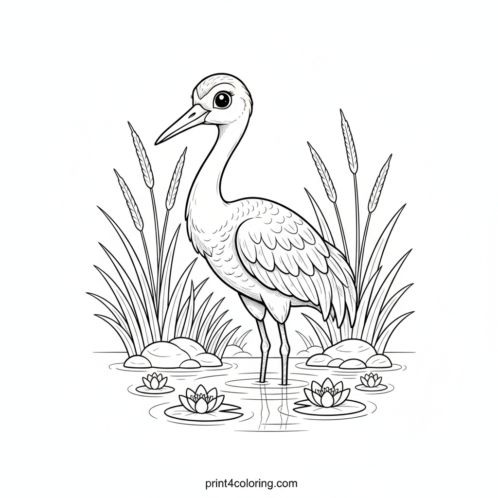 Graceful Wetland Crane's Peaceful Retreat Coloring Page