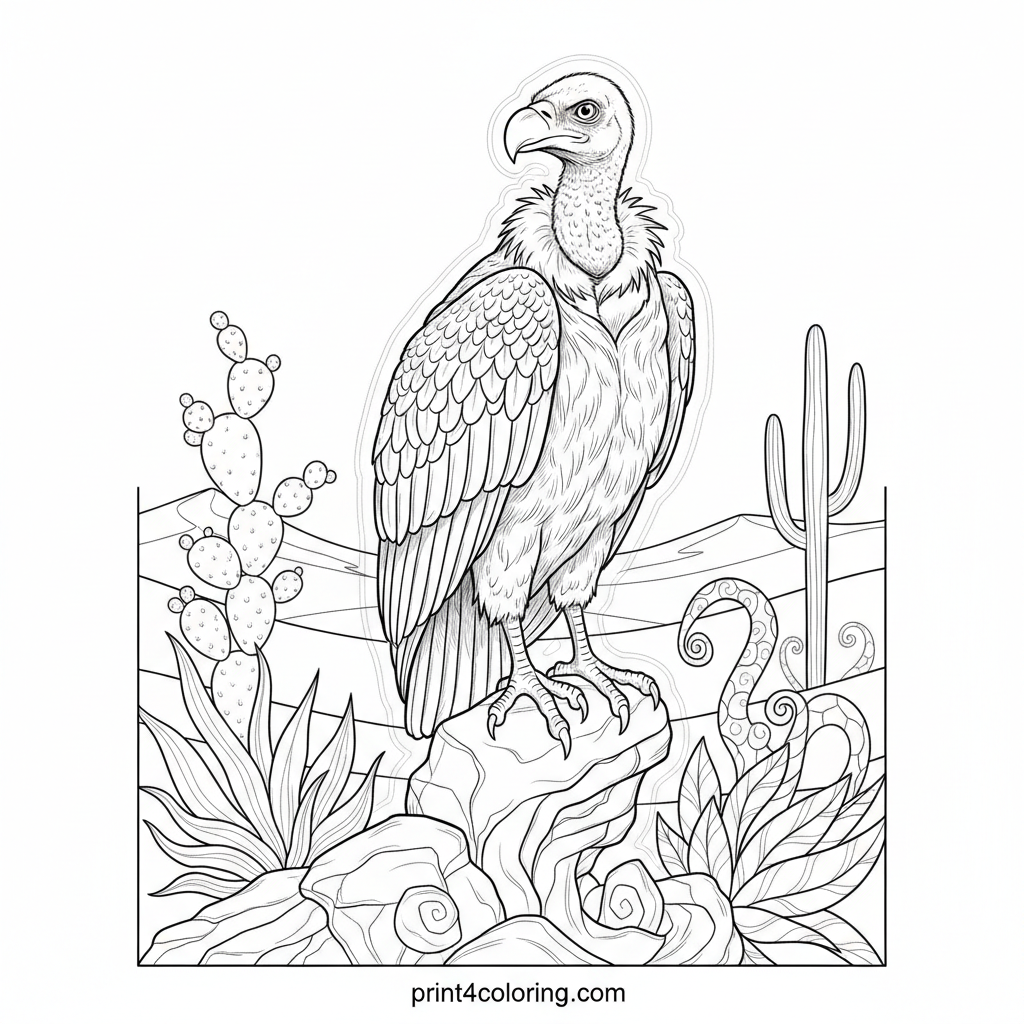 #vulture#guardian#desert#fantasy#mythical#birds#nature#ancient-rock#whispering-peaks#intricate#detailed#coloring-page#printable