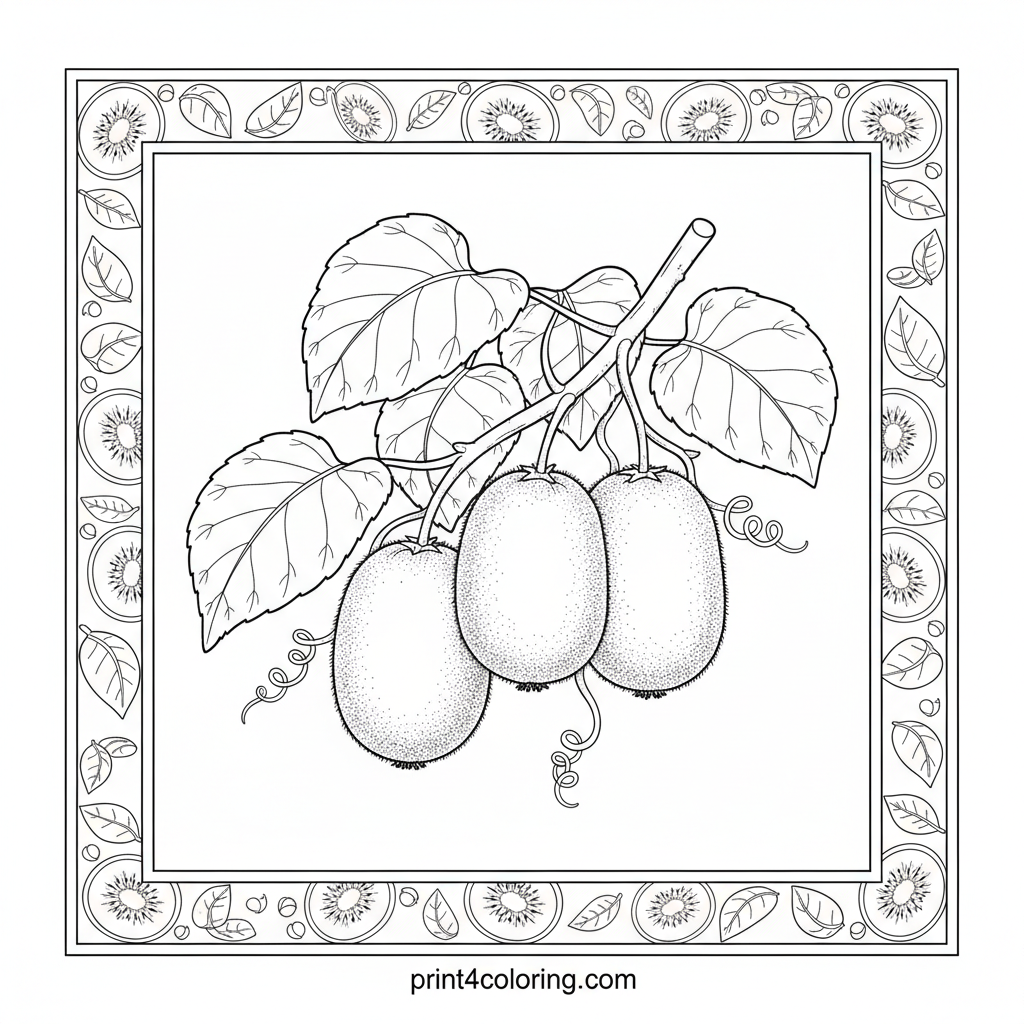 Intricate Kiwi Vine Botanical Study Coloring Page