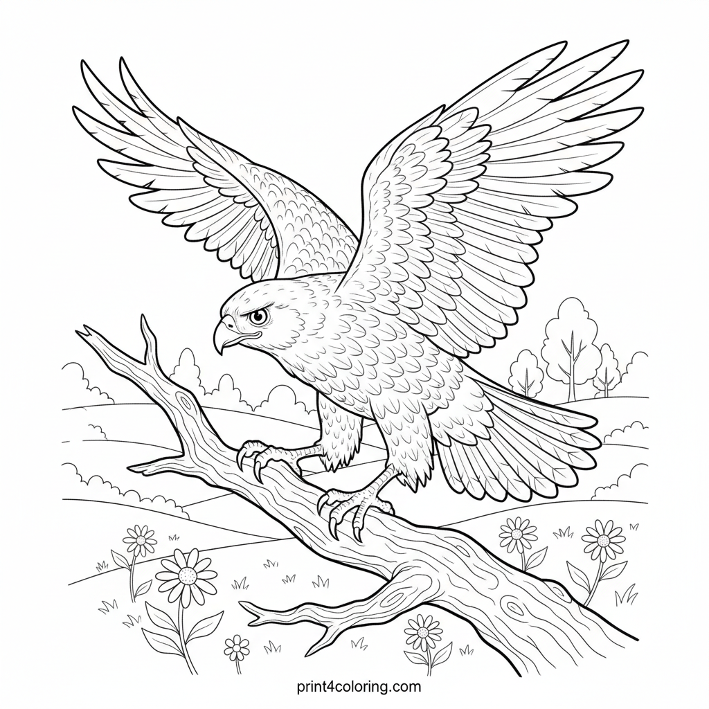 The Keen-Eyed Hawk's Oak Perch Coloring Page