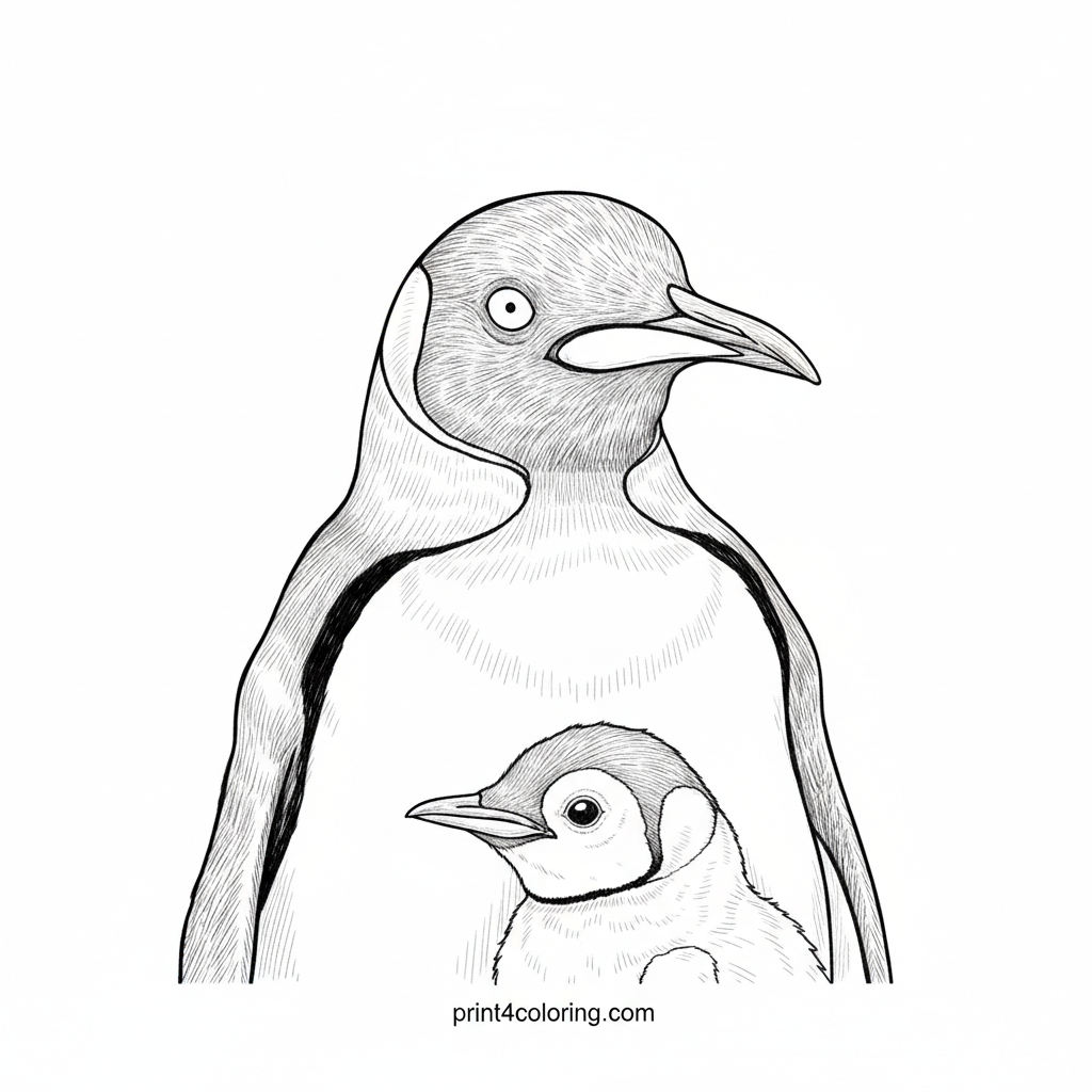 - 4🌈 Fluffy Chick - The chick's downy feathers are a soft grey-brown. Use very light, short, feathery strokes to capture its unique fluffiness, making it stand out as a soft, cuddly contrast to the adult penguins.