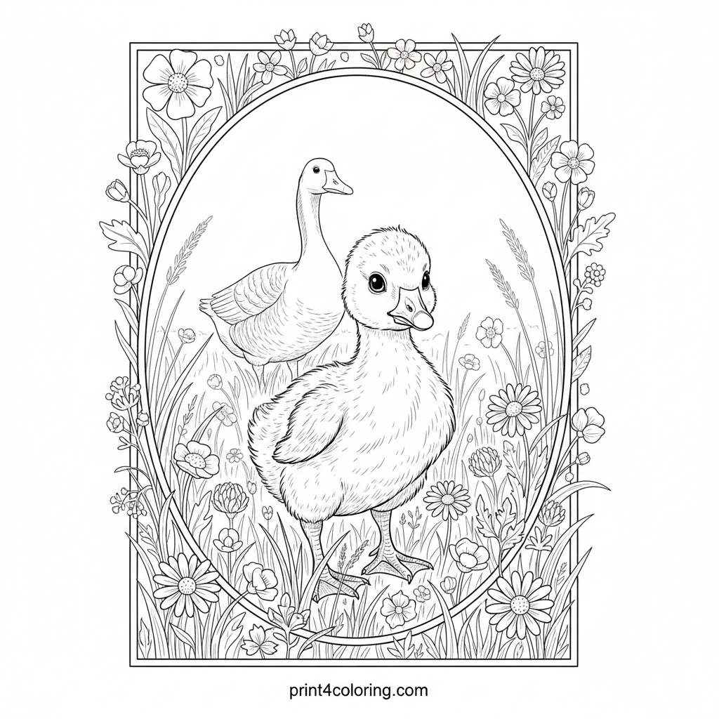 #gosling#goose#meadow#wildflowers#nature#baby-animal#spring#detailed#coloring-page#printable