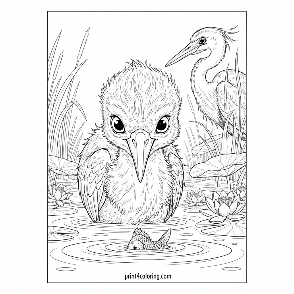 - 4🌈 **Eye Sparkle** - Give the young heron's big, curious eyes a tiny white highlight to make them truly shine and show its concentration.