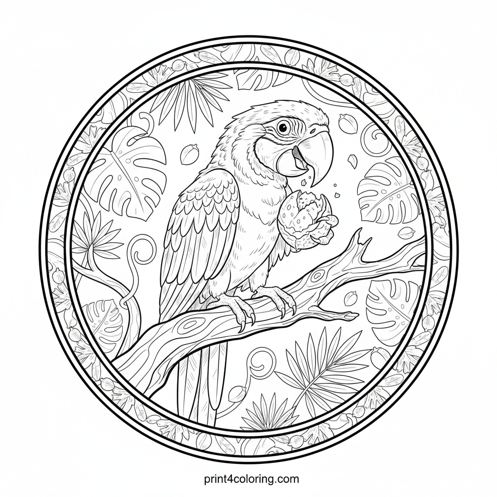 Macaw's Rainforest Feast Coloring Page