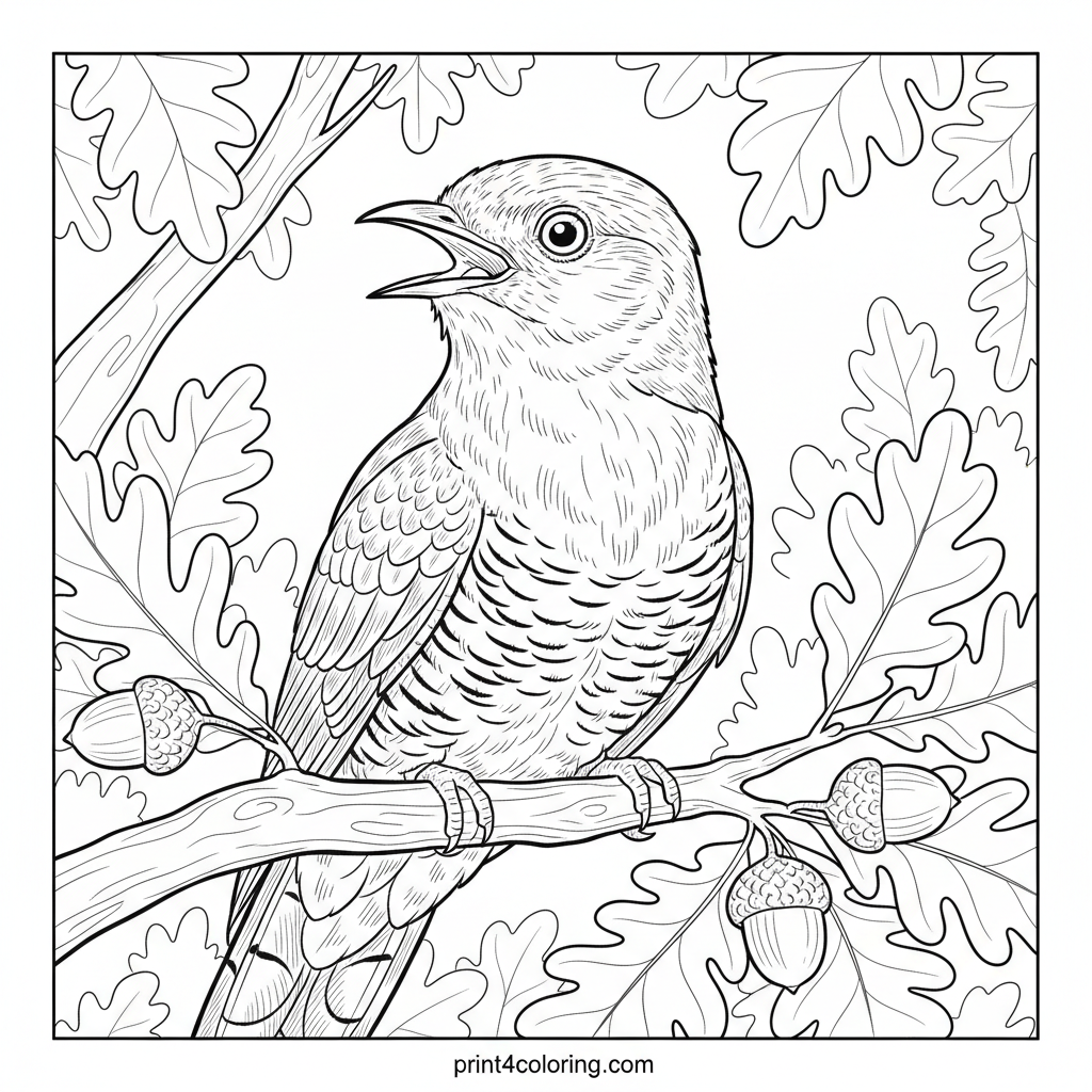 #cuckoo#bird#forest#nature#oak-tree#acorns#wildlife#expert-difficulty#coloring-page#printable