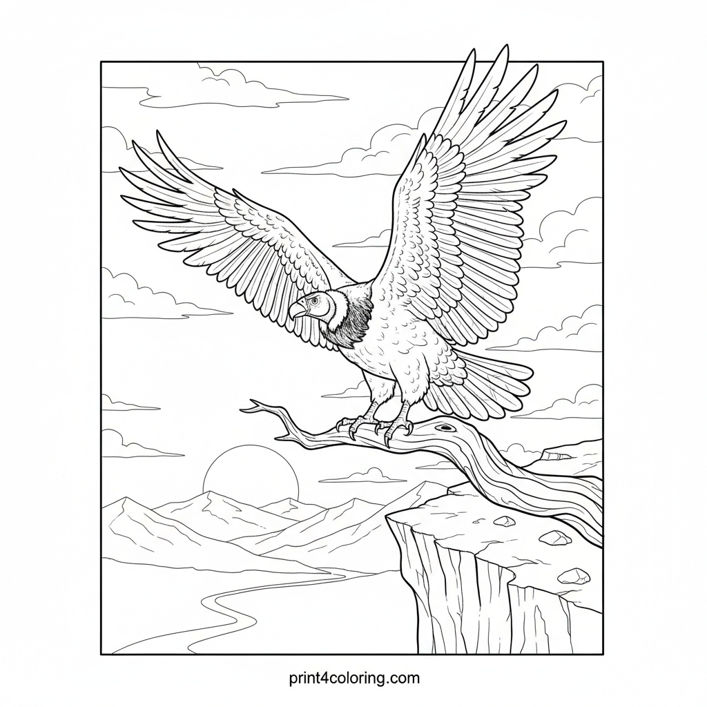 Majestic Condor's Sunset Perch Coloring Page