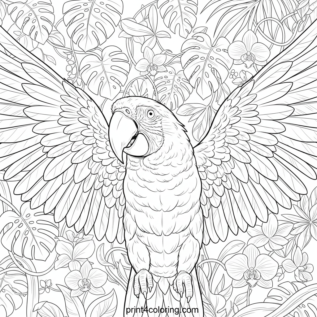 Prepare for an expert coloring adventure! Capture the breathtaking beauty of a Scarlet Macaw soaring through the dense rainforest canopy. Its powerful wings are spread wide, showcasing intricate feather patterns amidst lush leaves, winding vines, and delicate orchids. Bring this vibrant tropical scene to life with your most brilliant colors!