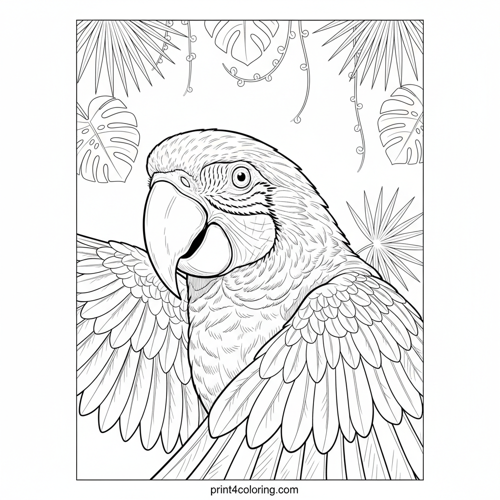 Capture the breathtaking beauty of a magnificent macaw soaring gracefully above the vibrant rainforest canopy. Its outstretched wings are a blur of color against a backdrop of intricate leaves and twisting vines. This detailed scene invites you to bring the tropical jungle to life with every shade imaginable, celebrating nature's aerial acrobat.