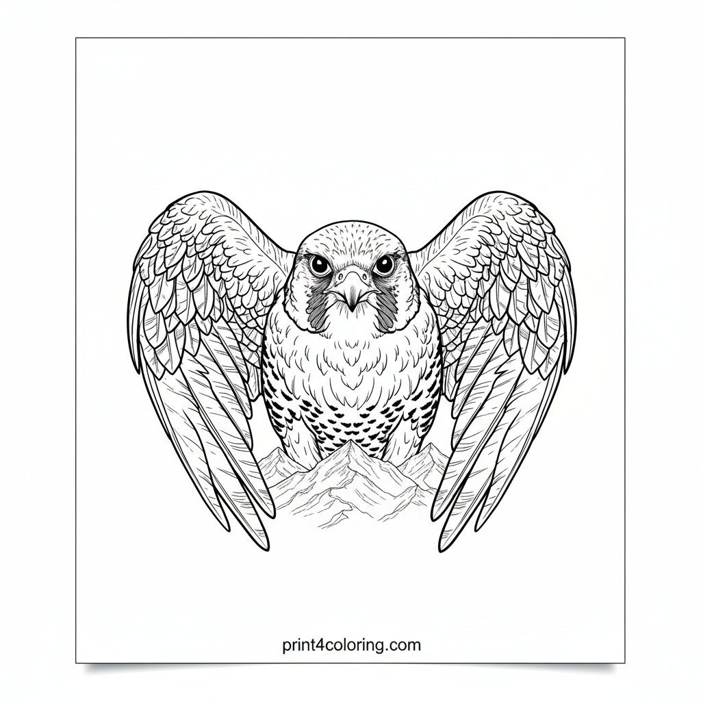 Majestic Peregrine Falcon: Mountain Flight Coloring Page