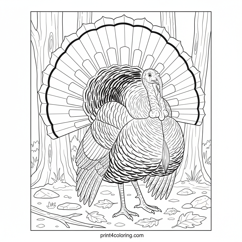 Majestic Wild Turkey Display Coloring Page