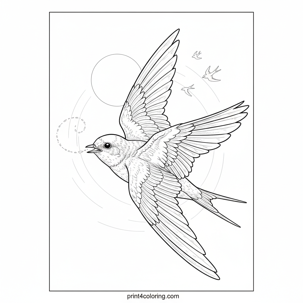 Moonbeam Harvest: Swallows in Flight Coloring Page