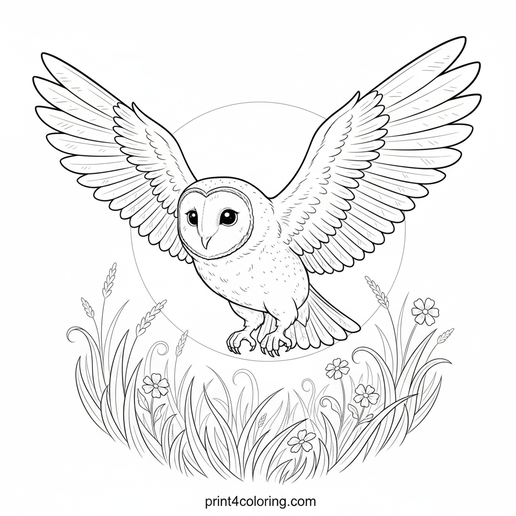 Moonlit Barn Owl's Graceful Flight Coloring Page