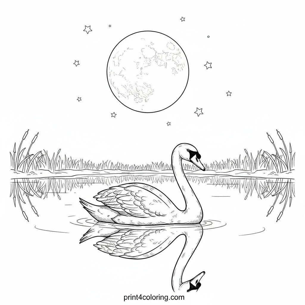 Moonlit Majesty: Swan on a Starlit Lake Coloring Page