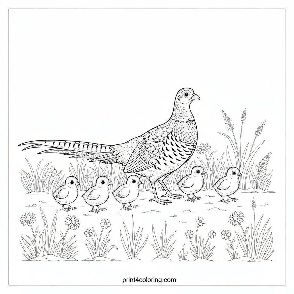 Mother Pheasant's Meadow March Coloring Page