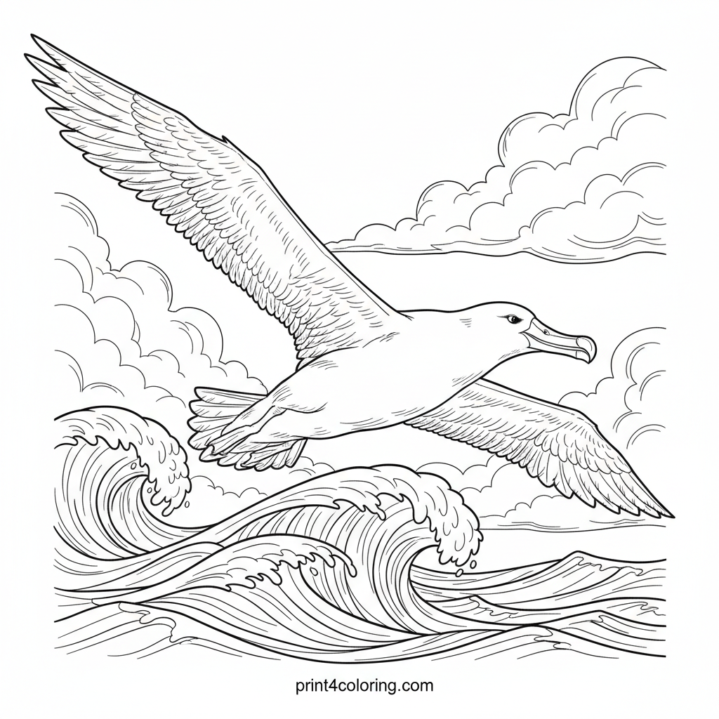 Ocean Monarch: Albatross in Dynamic Flight Coloring Page