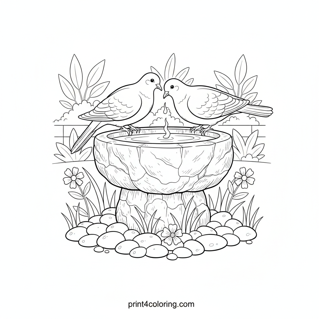 Peaceful Doves by the Wildflower Bird Bath Coloring Page