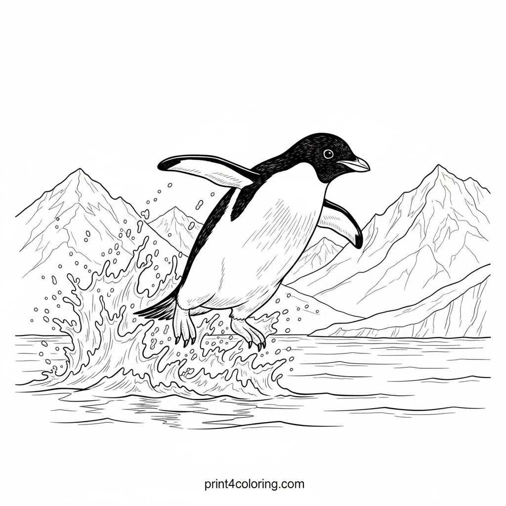 #penguin#adelie-penguin#ocean#arctic#leap#splash#wildlife#action#mountains#coloring-page#printable