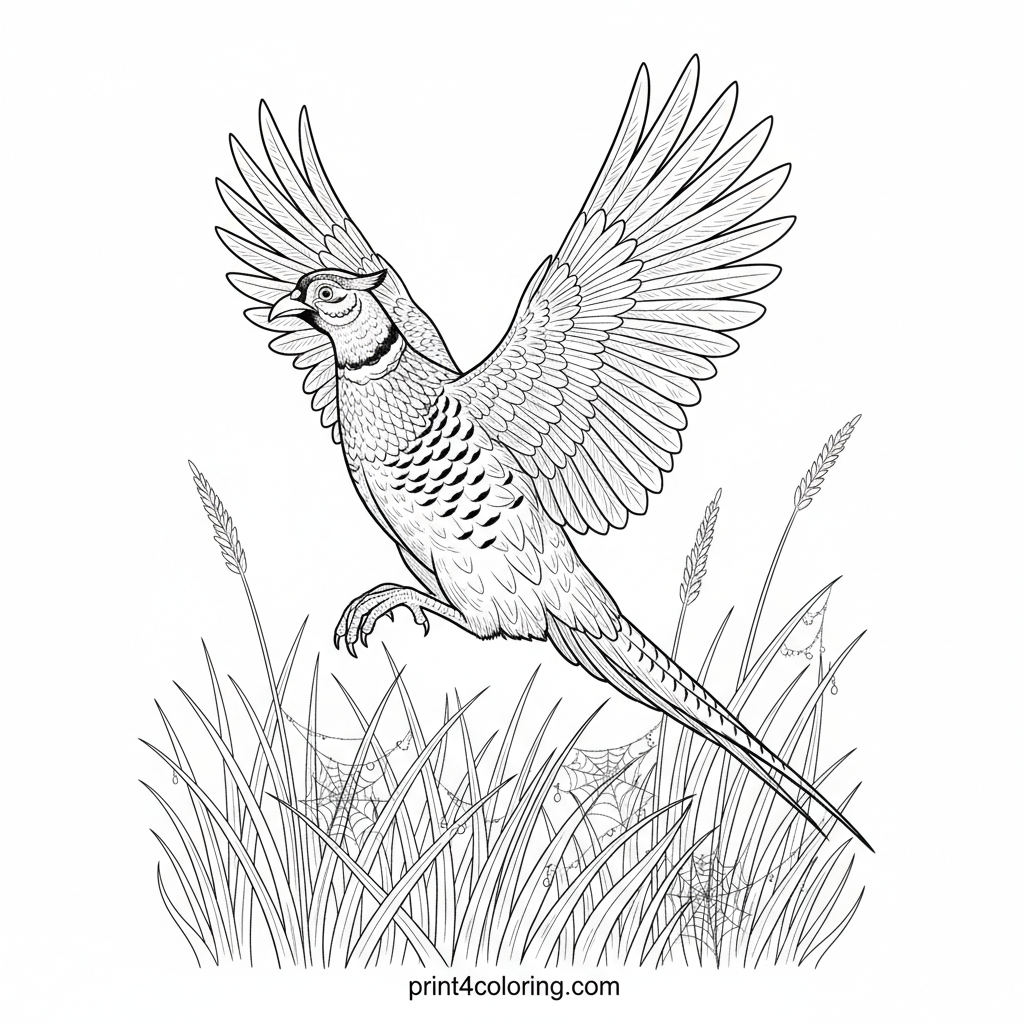 #pheasant#bird#flight#dawn#nature#wildlife#meadow#coloring-page#printable