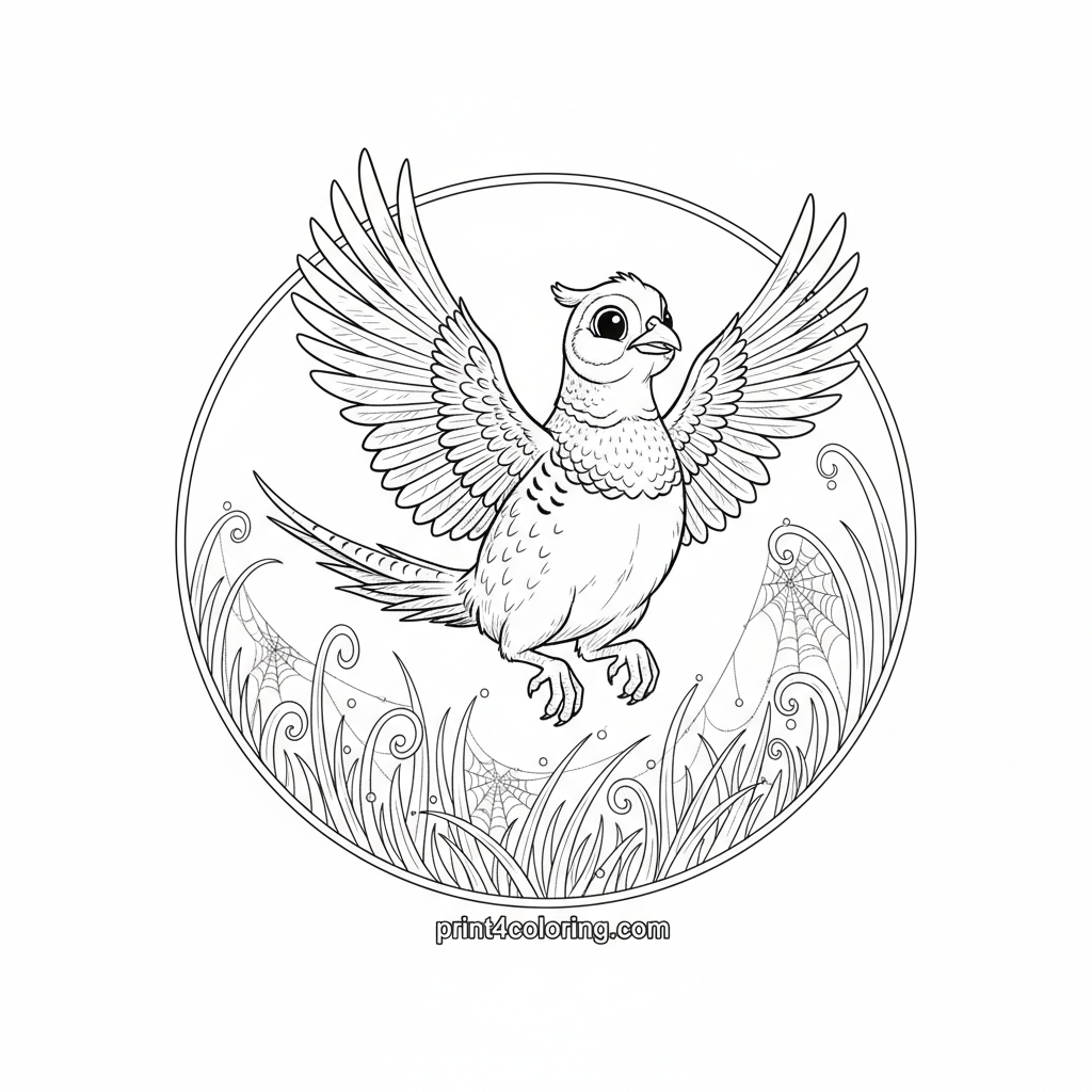 #pheasant#bird#wildlife#dawn#flight#nature#meadow#feathers#cute#cozy#coloring-page#printable