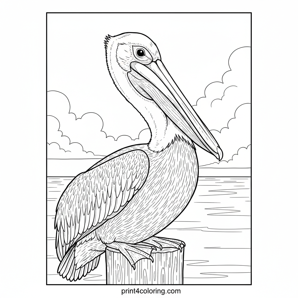 Pier Perch: Majestic Pelicans Coloring Page