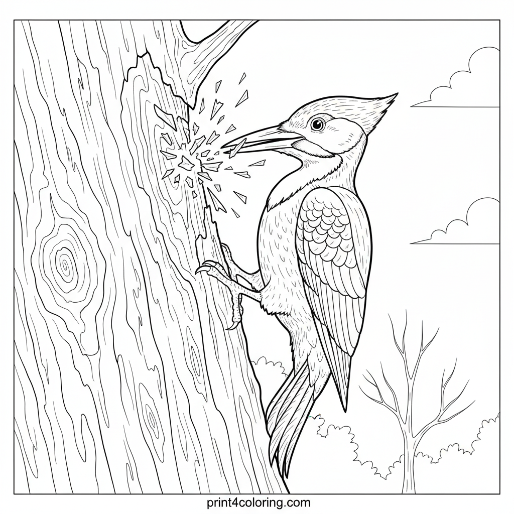 - 2🖍️ Feathered Fury - Pay close attention to the Pileated Woodpecker's unique red crest and the intricate patterns of its black and white feathers.