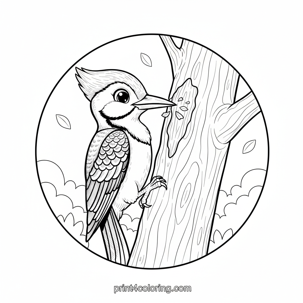 - 3✨ Flying Chips - Add tiny specks of light brown or white around the woodpecker's beak to show the wood chips scattering in mid-air.