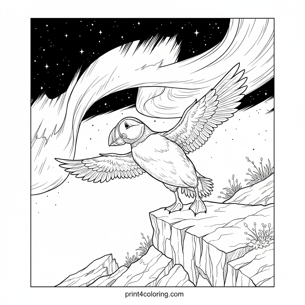 Puffin's Aurora Serenade Coloring Page
