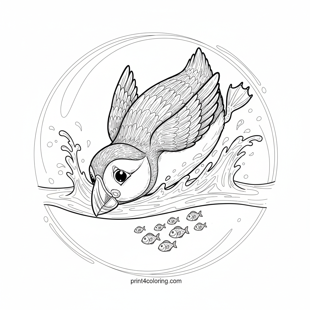 #puffin#bird#ocean#dive#fish#wildlife#sea-creature#coloring-page#printable