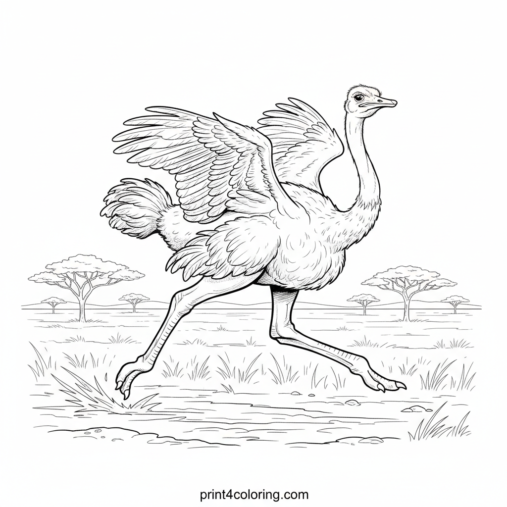 Savanna Sprinter: Majestic Ostrich Run Coloring Page