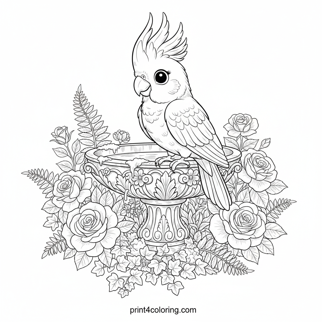 Secret Garden Cockatoo's Elegant Perch Coloring Page