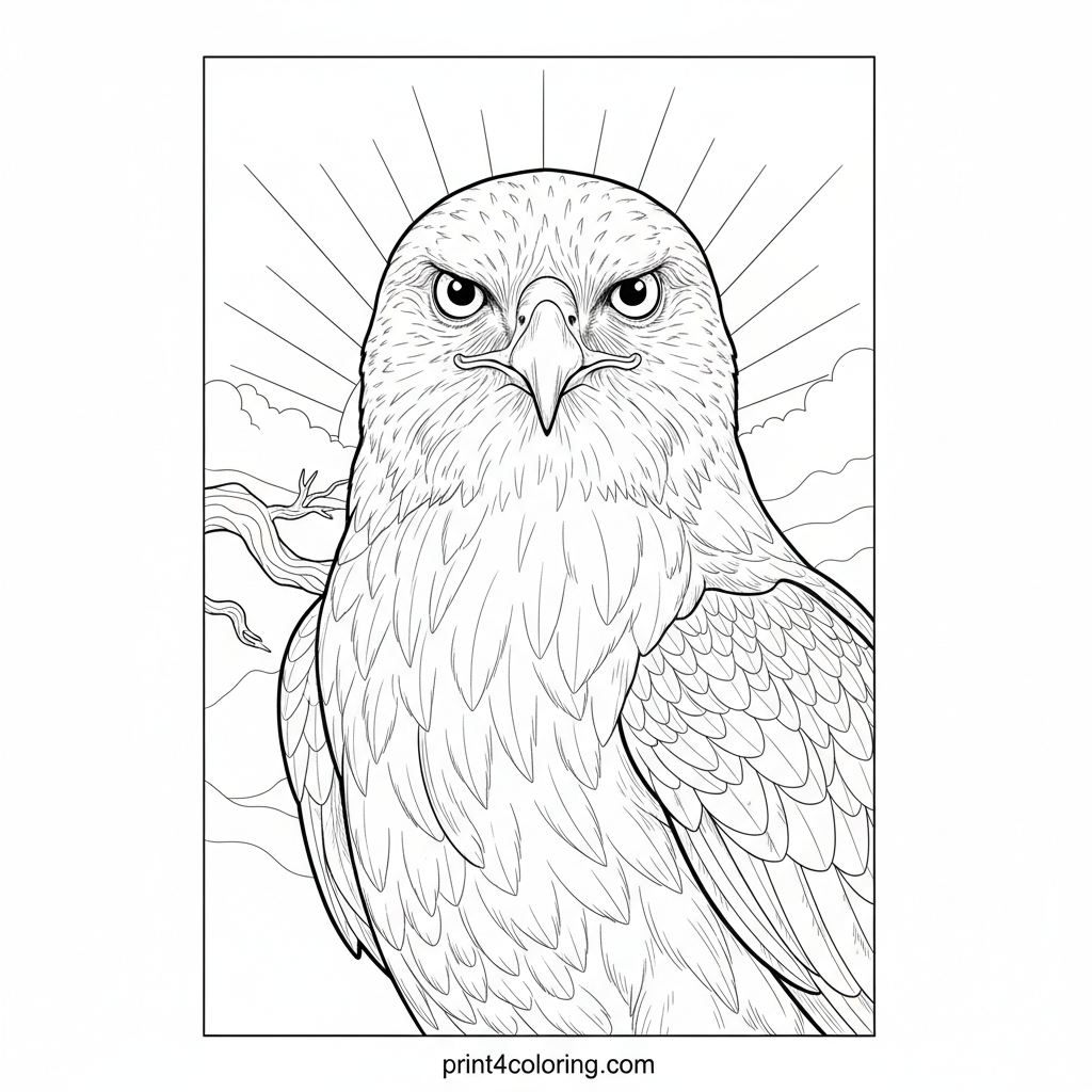 Sentinel of the Sunrise Hawk Coloring Page