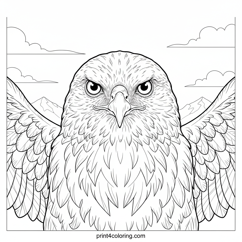 Sky Guardian: Majestic Hawk's Flight Coloring Page