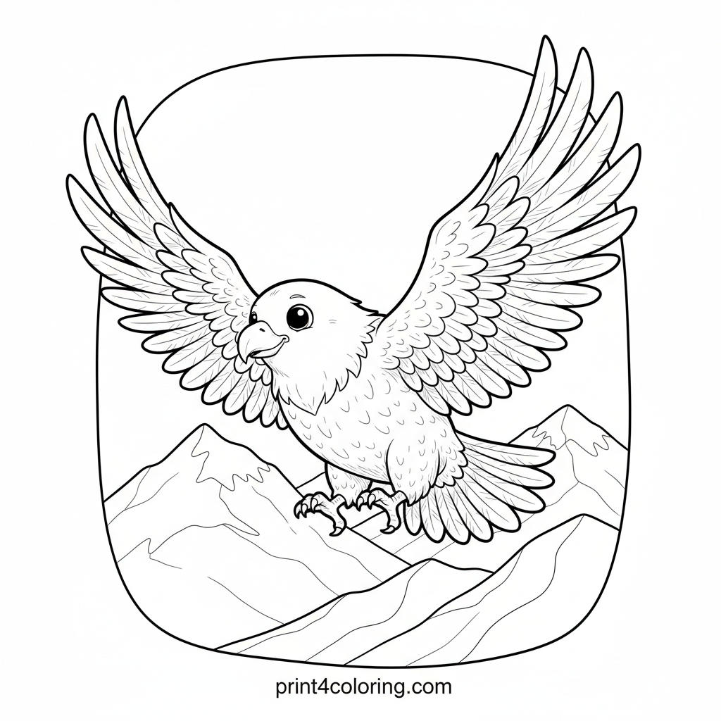 Gaze upon a magnificent eagle, wings spread wide, as it masterfully glides above towering, rugged mountains. This detailed scene captures the powerful bird catching an updraft, offering a breathtaking view of nature's grandeur. Get ready to bring this majestic flight to life with your colors!