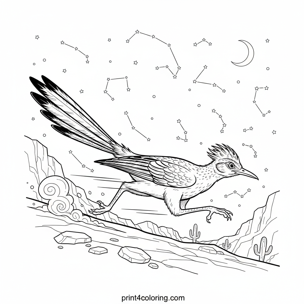 #roadrunner#desert#night-sky#constellations#moon#bird#wildlife#expert-coloring#coloring-page#printable