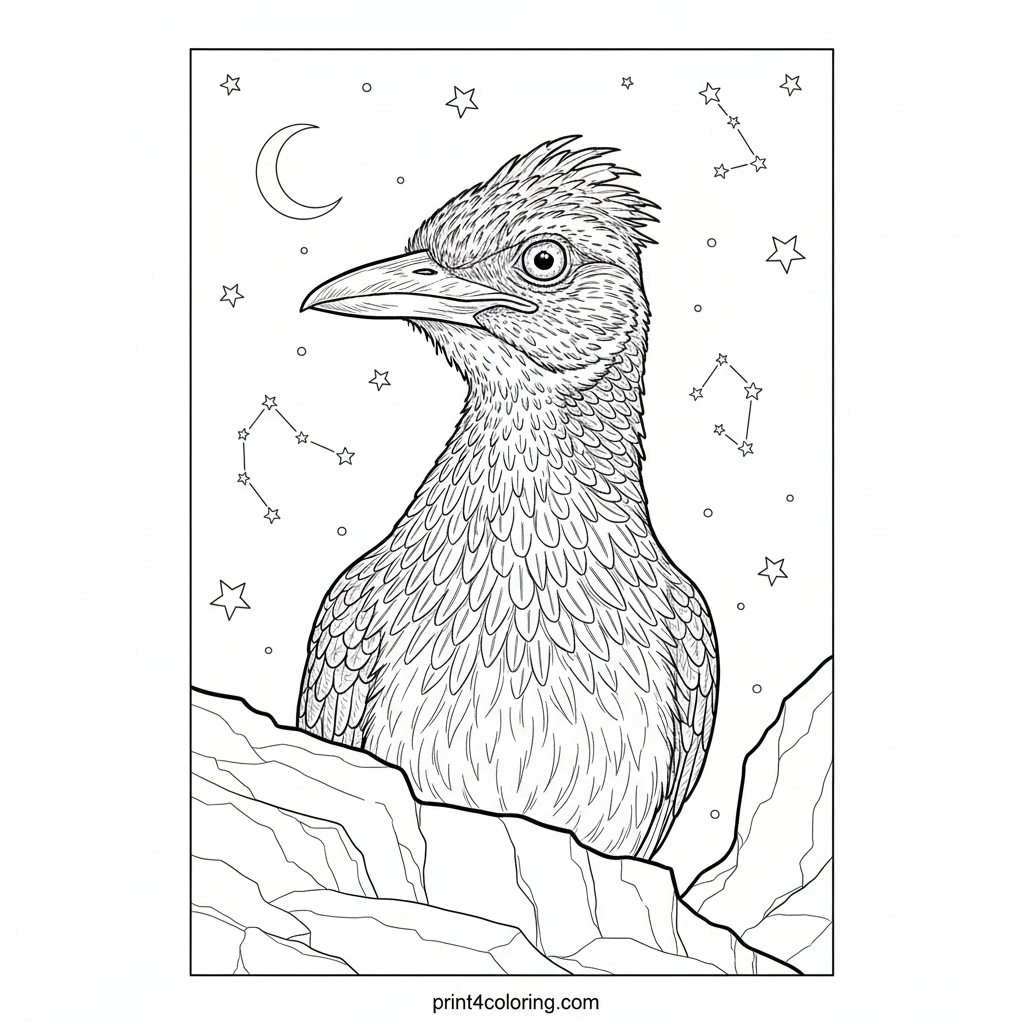 Starlight Sentinel Roadrunner: Desert Night Guardian Coloring Page