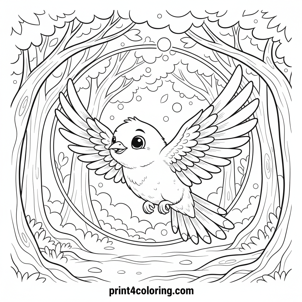 Sun-Dappled Cuckoo's Forest Flight Coloring Page