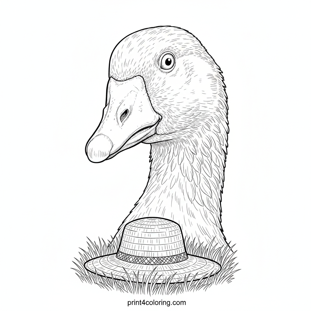 #goose#bird#farm-animal#hat#curious#nature#portrait#detailed#coloring-page#printable