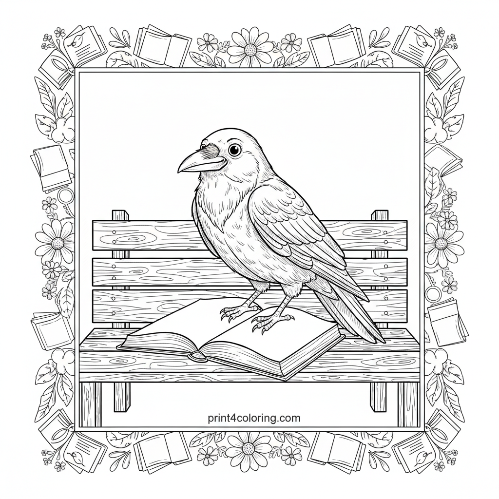 The Curious Reader Crow: A Feathered Scholar's Tale Coloring Page