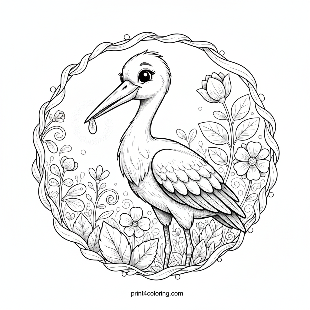 #stork#bird#garden#magic#fantasy#nature#seed#enchanted#botanical#glowing#coloring-page#printable
