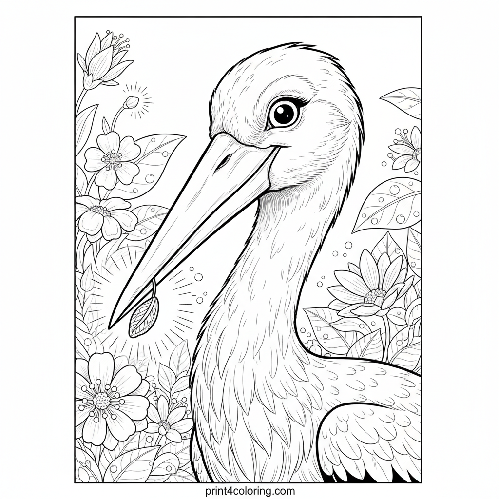 #stork#bird#fantasy#magical#garden#nature#plants#seed#enchanted#coloring-page#printable