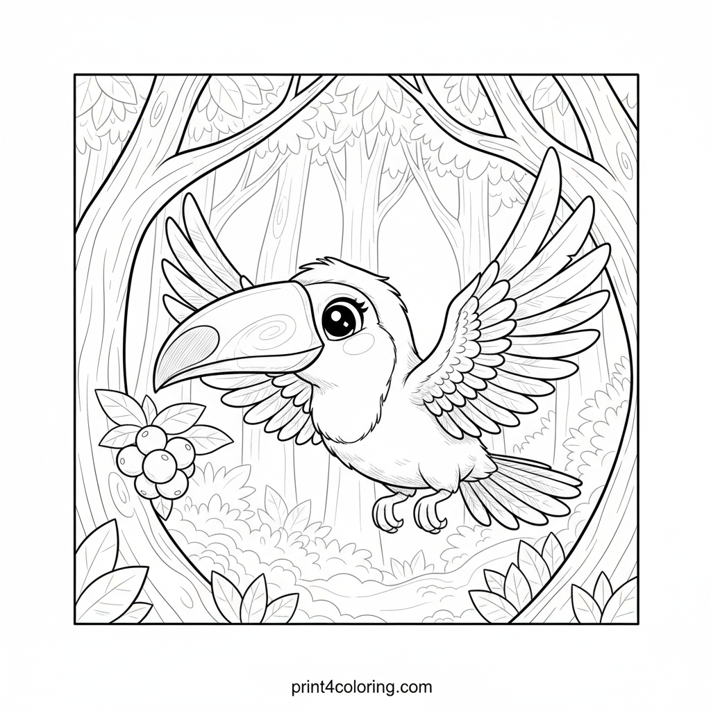 #toucan#rainforest#bird#jungle#flight#tropical#berries#nature#coloring-page#printable